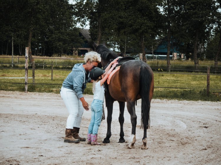 Wat hadden we daar geluk mee, dat we aan dat adres gekomen zijn. En daarbij dat er een plekje vrij was, want bij Wiepkje zitten de lessen eigenlijk altijd vol. Dat is precies de reden dat ik Lynn destijds al op de wachtlijst heb laten zetten. Lynn was toen nog maar een dreumes van een jaar of drie en natuurlijk wist ik niet of ze überhaupt zou willen paardrijden in de toekomst. Maar ze vond toen de paarden al wél erg interessant en bovendien: beter alvast op de wachtlijst en het niet nodig hebben, dan andersom!