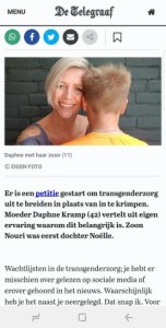 - Ik heb een zoon – Een zoon met borstjes.Mama, ik wil geen borsten Ik heb een zoon. Zo! Dat is eruit! Dit is de eerste keer dat ik het hardop uitspreek: “Ik heb een zoon.” Mijn zoon is namelijk transgender en is bijna twaalf jaar lang onze dochter geweest. Op dit moment zitten we midden in de transitie van vrouwelijk naar mannelijk en… Read more: Ik heb een zoon – Een zoon met borstjes.